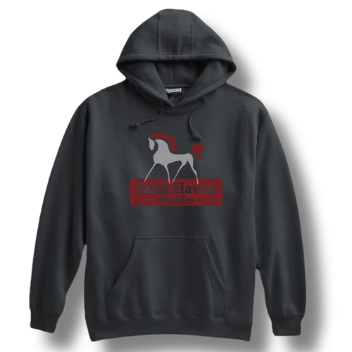 Faith Haven Stables: Super Weight Adult/Youth Hoodie with Sleeve Accent in Silver Glitter